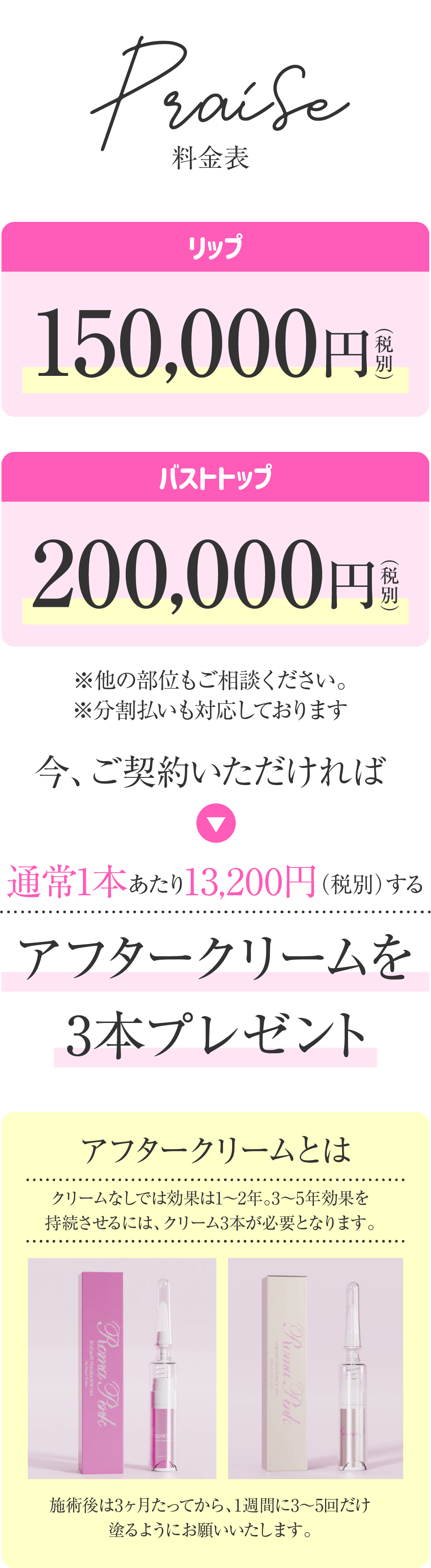摩擦や強い刺激を避け、指定のアフタークリームで保湿ケアをしていただくと、より効果が長持ちします。